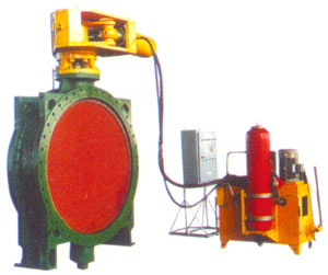 該蝶閥開啟、關閉均靠液壓驅動,可在 90 °范圍內調節(jié)蝶板快、慢兩階段關閉角度,可立臥兩式安裝。